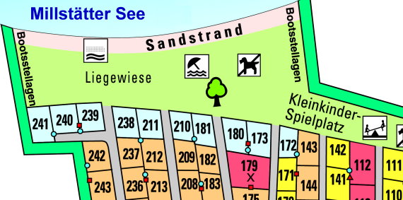 Large, well-kept pitches of different categories - all with electricity (6A, some 16 A + SAT), almost all with water/sewage connection